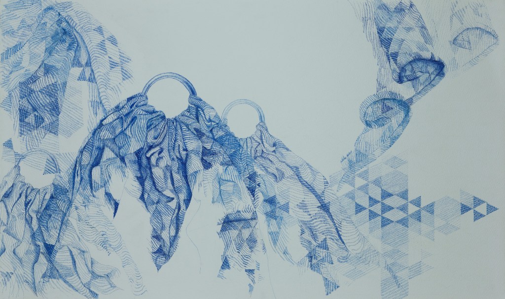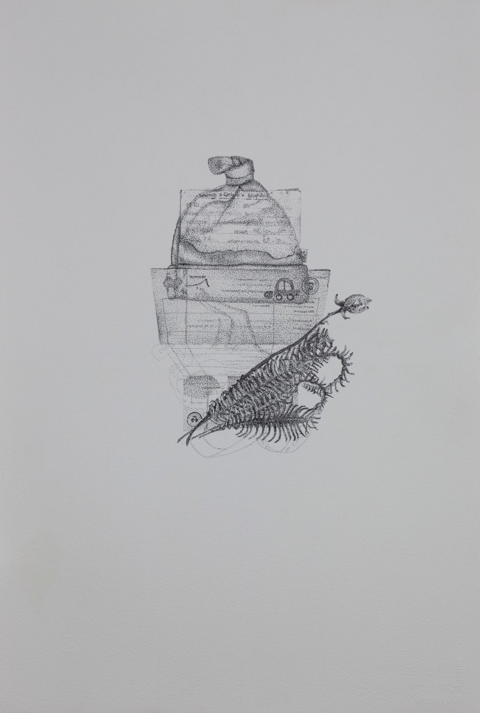 Wrapped. Pen on Arches paper, 46 x 77cm, 2020